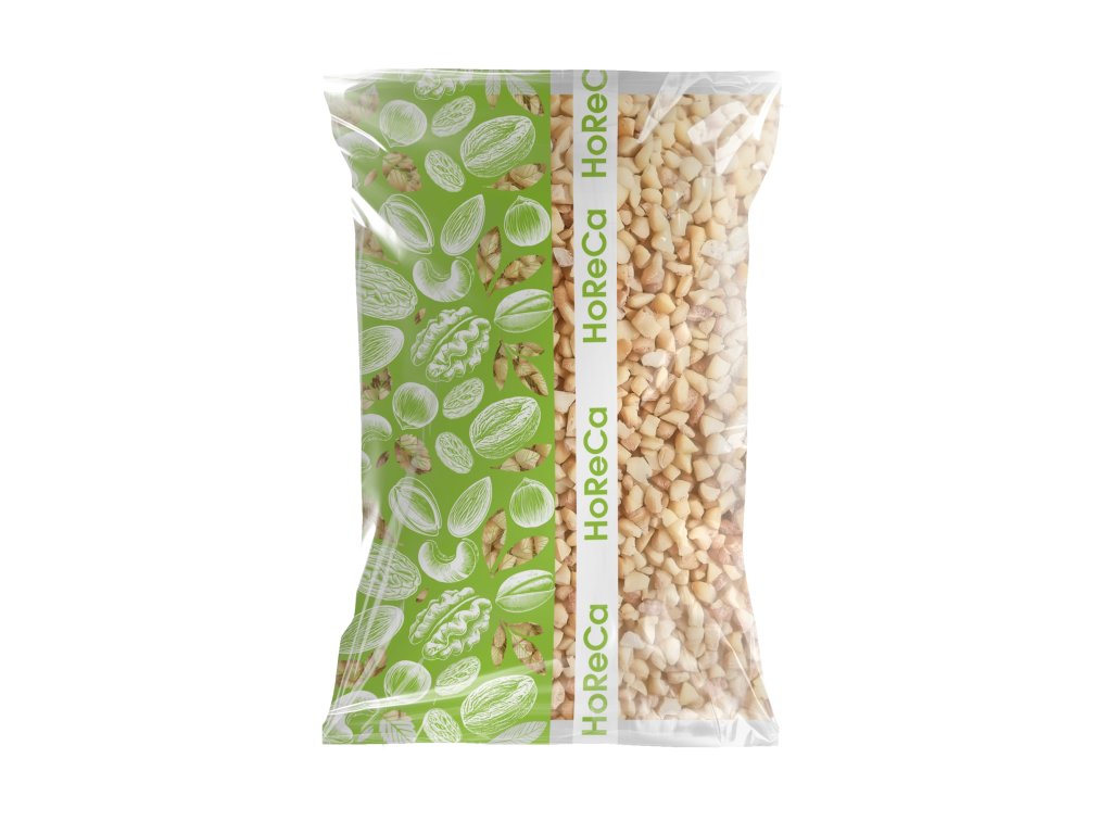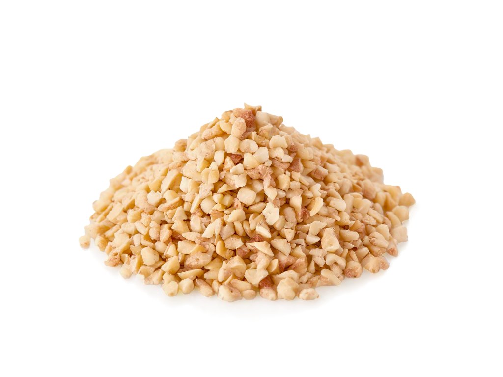 Lísková jádra drcená pražená 2–4 mm – jemná pražená drť z blanšírovaných lískových ořechů, ideální pro pečení, dezerty, müsli a gastronomii.