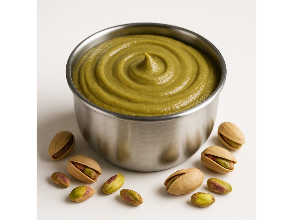 Čistá pasta z pistácií původem z USA. Vyrobeno z pražených pistáciových jader bez přidaných konzervantů. Ultrajemná struktura (20 mikronu) zajišťuje dokonalou konzistenci. Ideální pro restaurace, kavárny i domácí kuchyni.