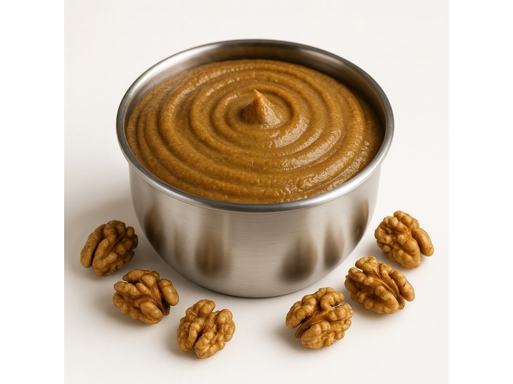 Čistá pasta z vlašských ořechů. Vyrobeno ze 100% pražených jader vlašských ořechů bez přidaných konzervantů. Ultrajemná struktura (20 mikronu) zajišťuje dokonalou konzistenci. Ideální pro restaurace, kavárny i domácí kuchyni.